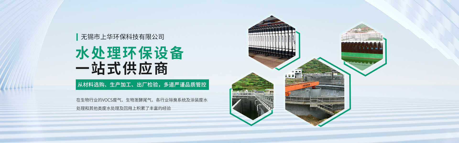 無錫市上華環??萍加邢薰荆溆陲L景秀麗的太湖之濱,是國內現代化環保及水處理設備生產研究企業。公司不僅擁有強大完備的環保設備生產研發能力,更有著一支具備三十余年環保設備生產服務文明和熱愛環保事業、誠信敬業的高素質團隊。我們堅持走精品之路,致力于為客戶提供先進技術、性價比優的產品。在環保設備生產研發方面,公司精益求精,主要從事VOCS廢氣處理、除塵、噪音控制、制造化工、制藥廢水處理、城市污水處理、礦井水、煤焦化高濃度污水、等設備,特別是在生物行業的VOCS廢氣、生物發酵尾氣、各行業除臭系統及涂裝廢水處理和其他類廢水處理及回用上積累了豐富的經驗,我公司可為客戶一站式服務,在業界中已得到了普遍的贊譽和權威機構的高度認可...